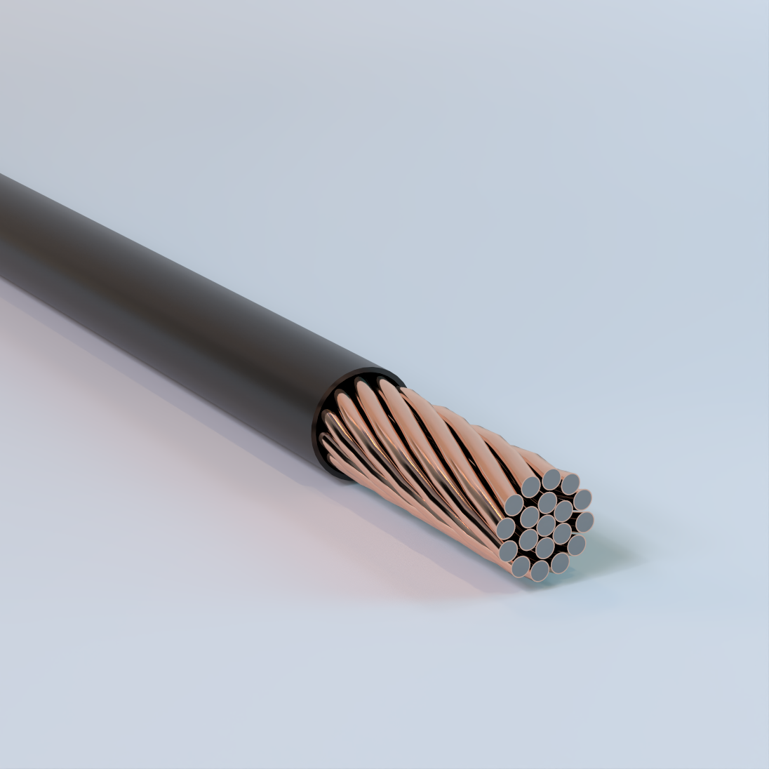 Concentric Lay Stranded, AA 8000 Series Aluminum Core, Metallurgically Bonded Copper Cladding, Min. 10% Oxygen-Free Copper by Volume, XLPE Insulation, Direct Burial, 90° Wet or Dry, Sunlight Resistant, FV-1, Gasoline & Oil Resistant II, 2kV-Rated – Composite
