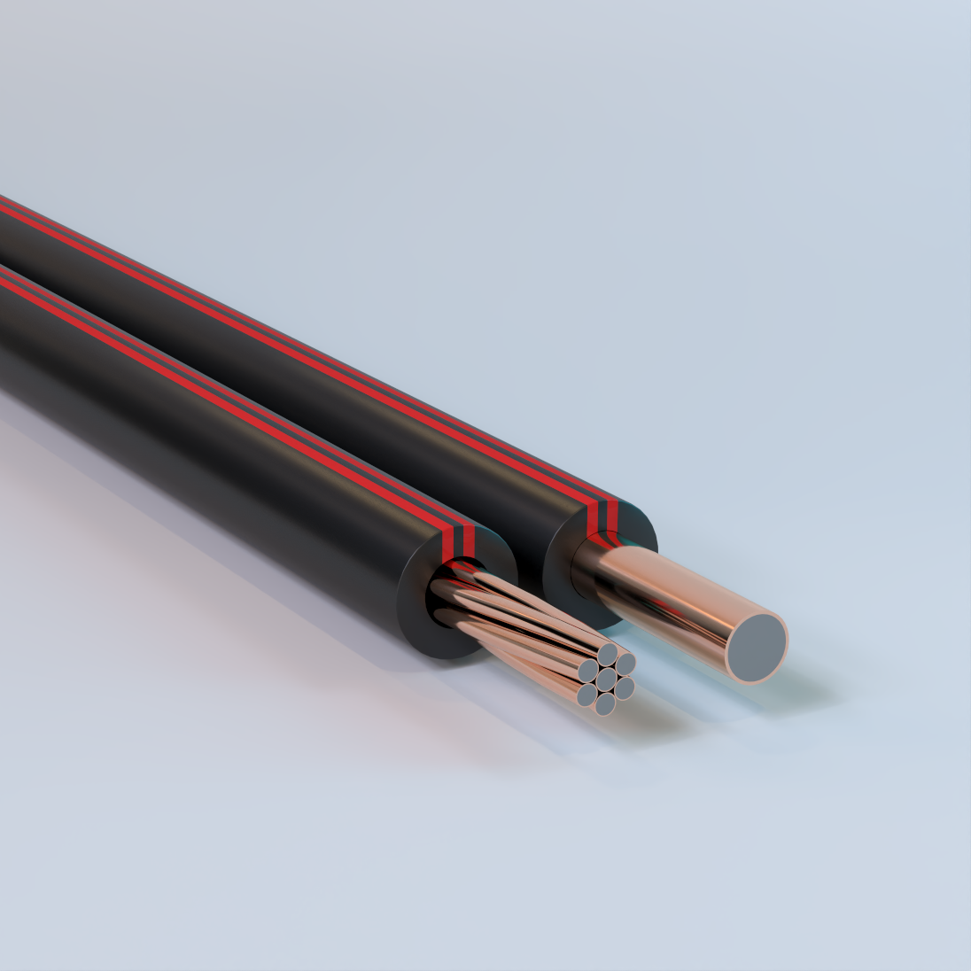 Solid (Single End) or Concentric Lay Stranded, Grade 40 Drawn Steel Alloy (DSA) Core, Metallurgically Bonded Copper Cladding, 1 Solid or 7 Strand, Thermoplastic Elastomer (TPE) Insulation/Cover with UV Protection – Composite