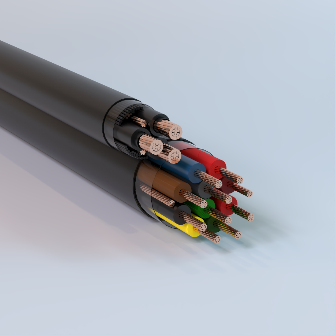 Designed for the installation and use in marine environments on offshore drilling rigs, aboard marine vessels, and on fixed and floating offshore facilities. Used in control, indicating, communication, electronic, and similar circuits where multiple conducter cables are required.